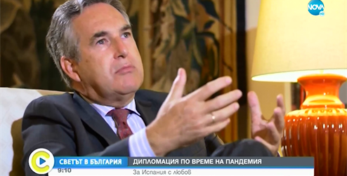 No se pierda la entrevista del Embajador Alejandro Polanco en Nova TV con la periodista Martina Gancheva sobre la economía española, el 110 aniversario del establecimiento de relaciones diplomáticas entre Bulgaria y España, las relaciones bilaterales, la cocina spañola, COVID-19 y otros.