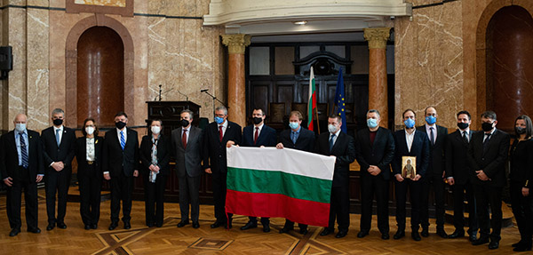 Entrega de la bandera búlgara a la expedición antártica de Bulgaria