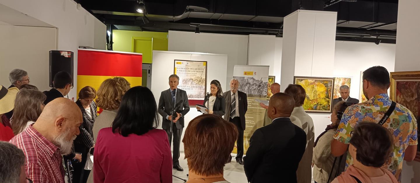 El Embajador de España ha inaugurado ayer la exposición “La imagen del Quijote a través de los siglos. Las visiones clásica inglesa, española y francesa; y una perspectiva moderna búlgara", compuesta por una serie de grabados que ilustran los personajes y las aventuras de Don Quijote de distintas ediciones a los que se suma una serie de óleos del pintor de Veliko Tarnovo, Hristo Panev, con su interpretación de la conocida figura de Cervantes.