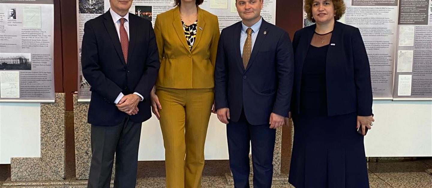 ​Inauguración de la muestra “Diplomacia desde el afecto. 110º aniversario de las relaciones diplomáticas entre Bulgaria y España” en Dohodno Zdanie (Ruse), abierta al público hasta el 29 de mayo. Acompañaron al Embajador de España la Viceministra de Educación y Ciencia, Marieta Georgieva, y el Alcalde de Ruse, Pencho Milkov.