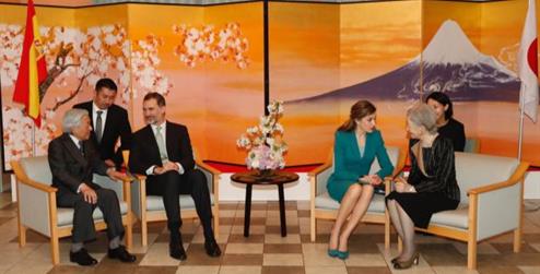 En la mañana del miércoles, 5 de abril, Sus Majestades los Reyes fueron recibidos oficialmente por Sus Majestades los Emperadores del Japón en el Palacio Imperial.