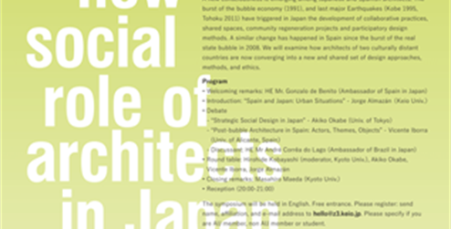 Una nueva conciencia está emergiendo entre los arquitectos japoneses y españoles. El pinchazo de la burbuja económica en los 90 y los grandes terremotos de Kobe en 1995 y Tohoku en 2011 han desencadenado en Japón el desarrollo de prácticas colaborativas, espacios compartidos, proyectos de regeneración comunitaria y métodos de diseño participativo. Un cambio similar ha acaecido en España desde el colapso de la burbuja inmobiliaria en 2008. Se examinará cómo arquitectos de países culturalmente dispares están convergiendo en prácticas y enfoques compartidos.