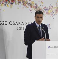 Pedro Sánchez viaja a Osaka para participar en la Cumbre del G20 29 de junio de 2019 España participó como invitado permanente en esta reunión, cuyos temas centrales han sido el comercio global, la innovación y la economía digital, ...