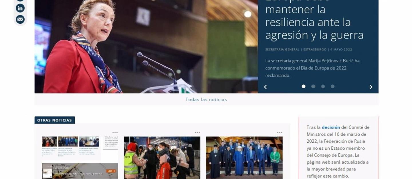 Gracias a esta nueva versión de su página web, el contenido difundido en español pasará a estar al mismo nivel que el que actualmente tienen el alemán o el italiano, dos lenguas que junto con el inglés y el francés cuentan con su propia versión dentro de la página web del Consejo de Europa.