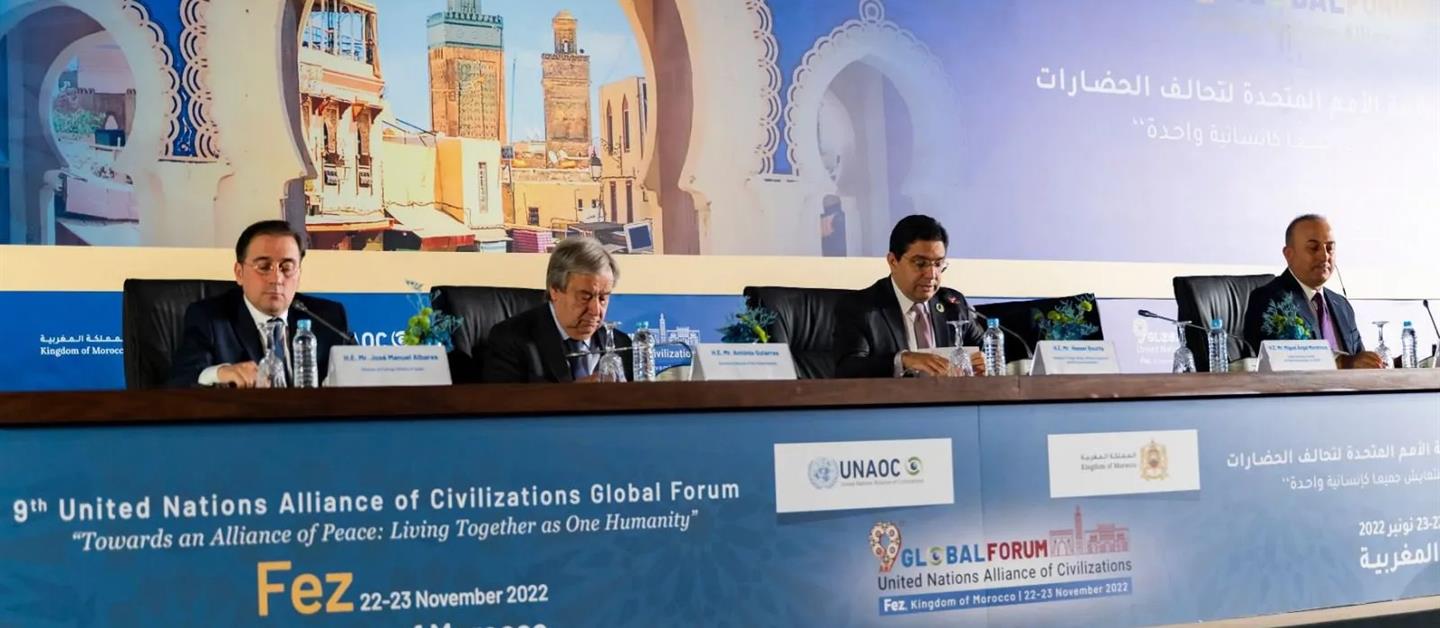 Dieciocho años después de que España propusiese por primera vez la creación de la Alianza de Civilizaciones, ésta celebra los días 22 y 23 en Fez (Marruecos) su IX Foro Global, al que han asistido el Ministro de Asuntos Exteriores, Unión Europea y Cooperación, José Manuel Albares; la Secretaria de Estado para la Cooperación Internacional, Pilar Cancela y el Representante Permanente de España ante las Naciones Unidas, Agustín Santos. También ha contado con la intervención del expresidente del Gobierno José Luis Rodríguez Zapatero, que propuso su creación ante la 59ª Asamblea General de la ONU, y el exministro Miguel Ángel Moratinos, en su calidad de Alto Representante de UNAOC (United Nations Alliance of Civilizations).