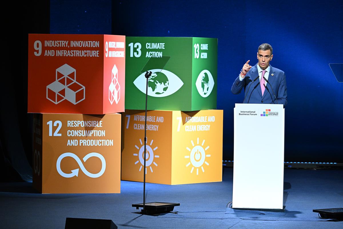 "Estamos a tiempo de ampliar mecanismos de financiación innovadores que impulsen transformaciones innovadoras, inversiones estables, inversiones orientadas al largo plazo que generen verdaderas oportunidades en los países receptores", señaló el presidente Sánchez. "Los países en desarrollo deben crear un entorno más propicio, por tanto, más seguridad jurídica", y las empresas invertir, crear empleo y pagar los impuestos que les permitan progresar; "en eso consiste el contrato global por el desarrollo sostenible que proponemos".