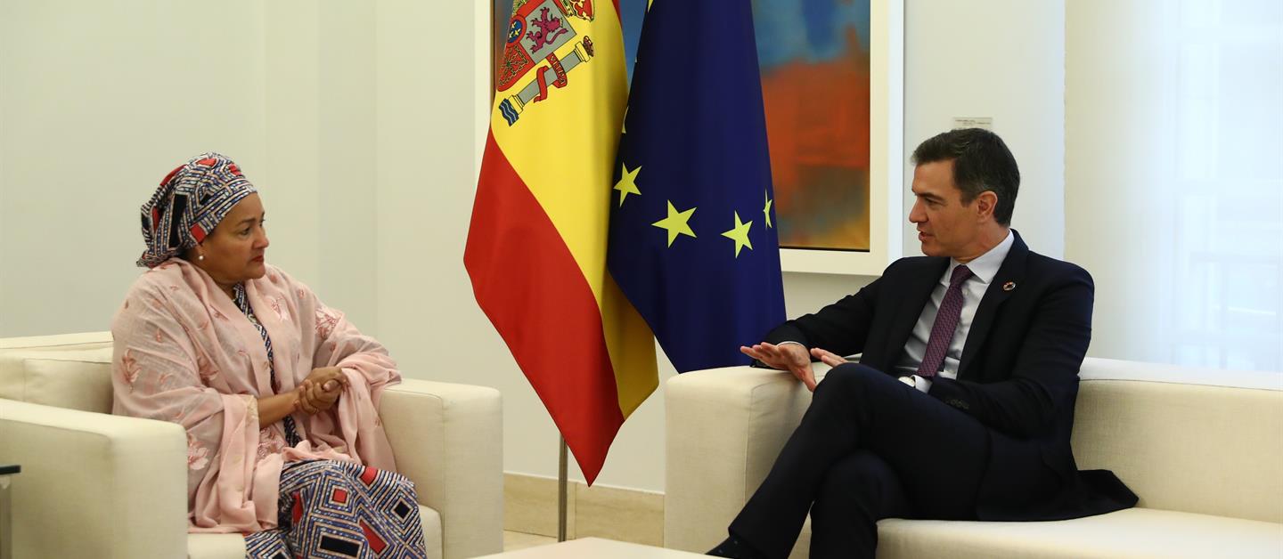 Madrid, 31 de octubre de 2022.- El presidente del Gobierno, Pedro Sánchez, se ha reunido hoy en el Palacio de la Moncloa con la Vicesecretaria General de Naciones Unidas, Amina Mohamed. Un encuentro que se produce tras la designación de Bilbao como sede del Secretariado de la Coalición Local 2030. Con éste son ya seis los organismos de la ONU en España.