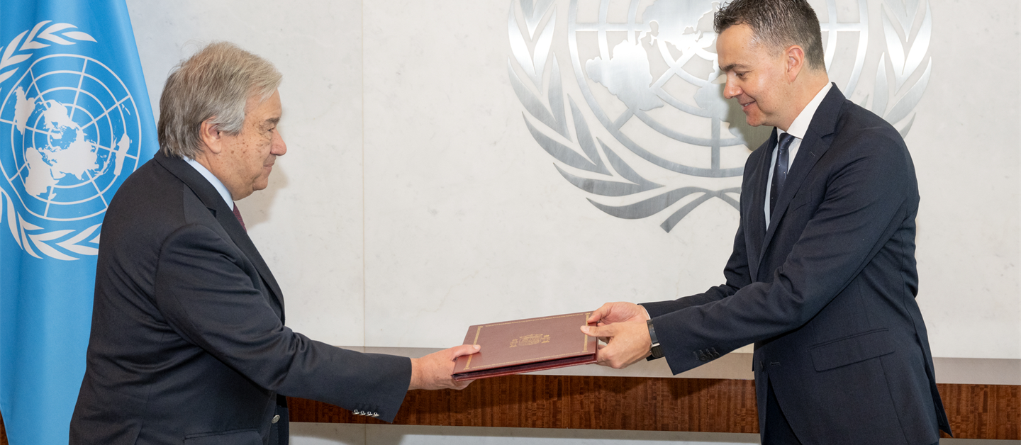El nuevo Embajador Representante Permanente de España ante las Naciones Unidas, Héctor Gómez, presentó hoy sus credenciales al Secretario General de la ONU, António Guterres. Durante el encuentro, el Embajador Gómez reiteró a Guterres el apoyo del Gobierno español a su labor, y en especial al intenso trabajo que está realizando de cara a conseguir un alto el fuego humanitario en Gaza. El Embajador Gómez subrayó además el compromiso de España con la defensa del multilateralismo, el orden internacional basado en reglas y la Agenda 2030.