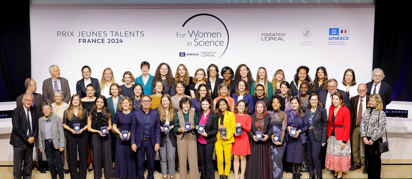 una ceremonia con ocasión de la entrega de los galardones del Premio Jóvenes Talentos de Francia L'Oréal-UNESCO para las Mujeres y la Ciencia