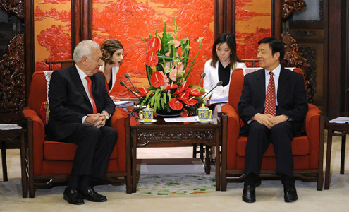 El ministro García-Margallo conversa con el vicepresidente Li Yuanchao, en Pekín. FOTO EFE