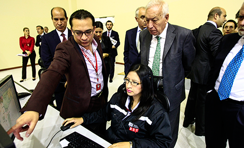 José Manuel García-Margallo visita la sede central del Sistema Integrado de Seguridad de Ecuador. FOTO EFE.