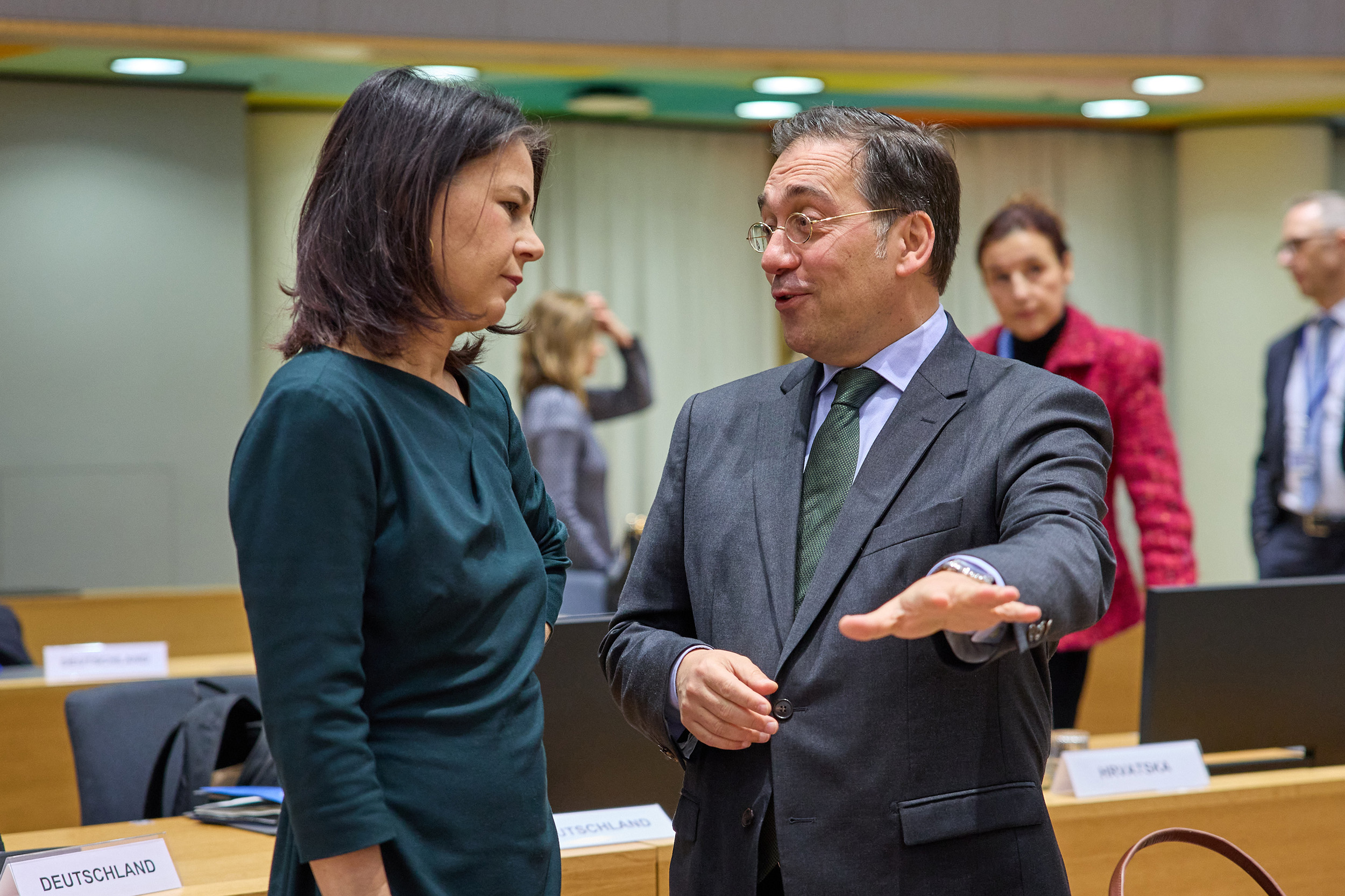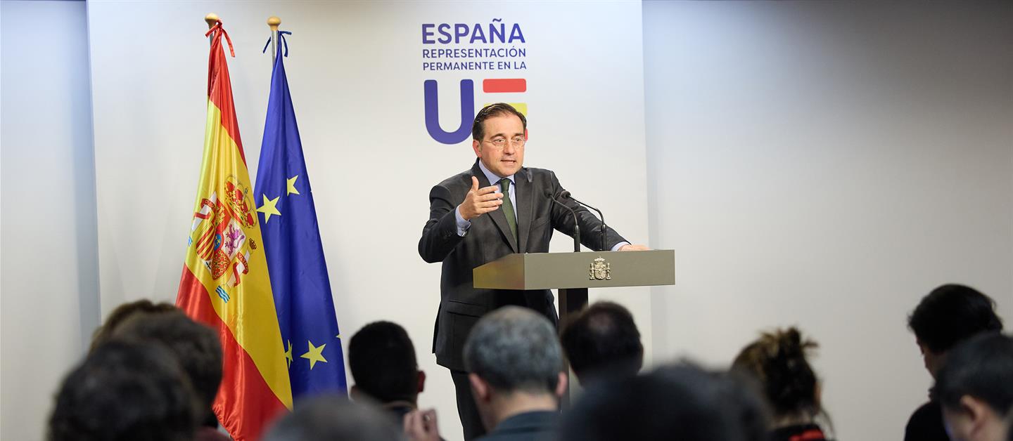 En su intervención ante sus homólogos de la Unión Europea, José Manuel Albares ha solicitado un alto el fuego permanente en Gaza y ha pedido “el acceso sin limitaciones y sin cortapisas de la ayuda humanitaria”. Asimismo, ha hablado a favor del reconocimiento internacional y de toda la comunidad internacional del Estado palestino, “que es la única garantía de seguridad y de estabilidad para Israel, para Palestina y el pueblo palestino y para todo Oriente Medio”. Además, ha reiterado la propuesta española de celebración de una Conferencia de paz “que sirva para implementar la solución de dos Estados”. En los márgenes del Consejo, el jefe de la diplomacia española se ha reunido, entre otros, con sus homólogos de Francia, Egipto, Omán, Jordania y Palestina.