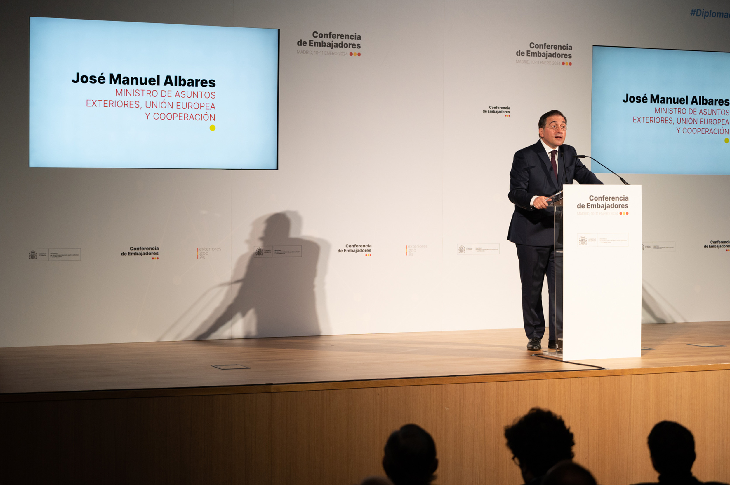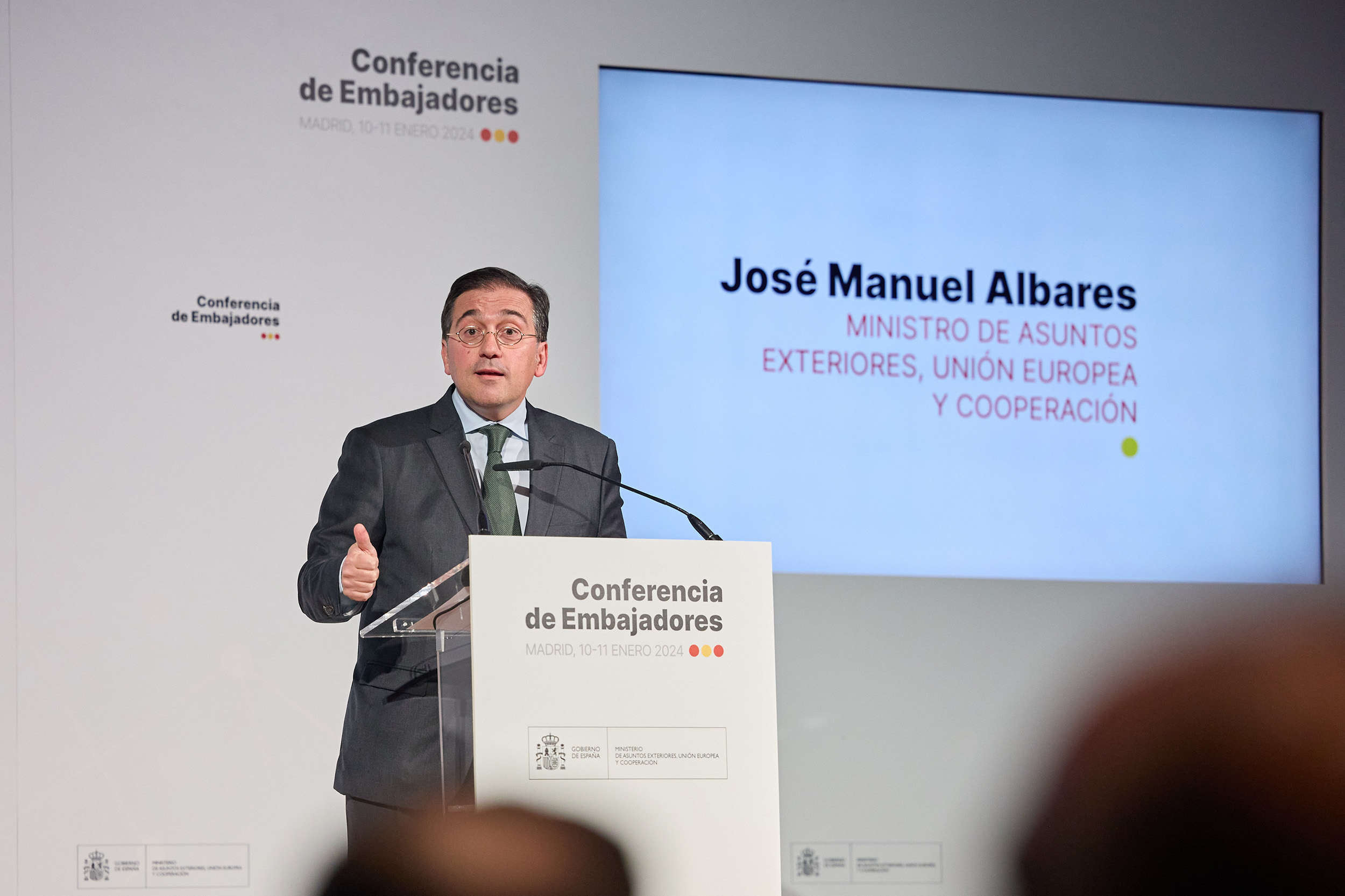 A continuación, el ministro expuso las prioridades y las líneas principales de la política exterior para los próximos años, resaltando la posición “activa y líder” de España en el ámbito internacional, “reconocida por nuestros socios y aliados en el mundo”. “Nuestra voz se escucha en Bruselas, en Washington y en Pekín. Tenemos españoles ostentando cargos vitales en la arquitectura europea e internacional. Todo esto tiene un impacto positivo y muy directo en el bienestar de los españoles. Sigamos en esta senda en 2024”, afirmó el jefe de la diplomacia española.