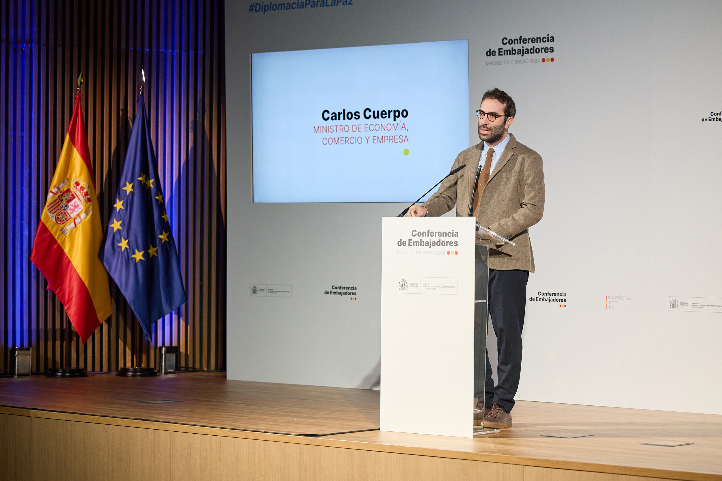 La Conferencia de Embajadores 2024 ha contado con la intervención de los ministros de Defensa, Margarita Robles; de Interior, Fernando Grande-Marlaska; de Economía, Comercio y Empresa, Carlos Cuerpo, y de Industria y Turismo, Jordi Hereu. También ha participado el secretario general de la SEGIB (Secretaría General Iberoamericana), Andrés Allamand.