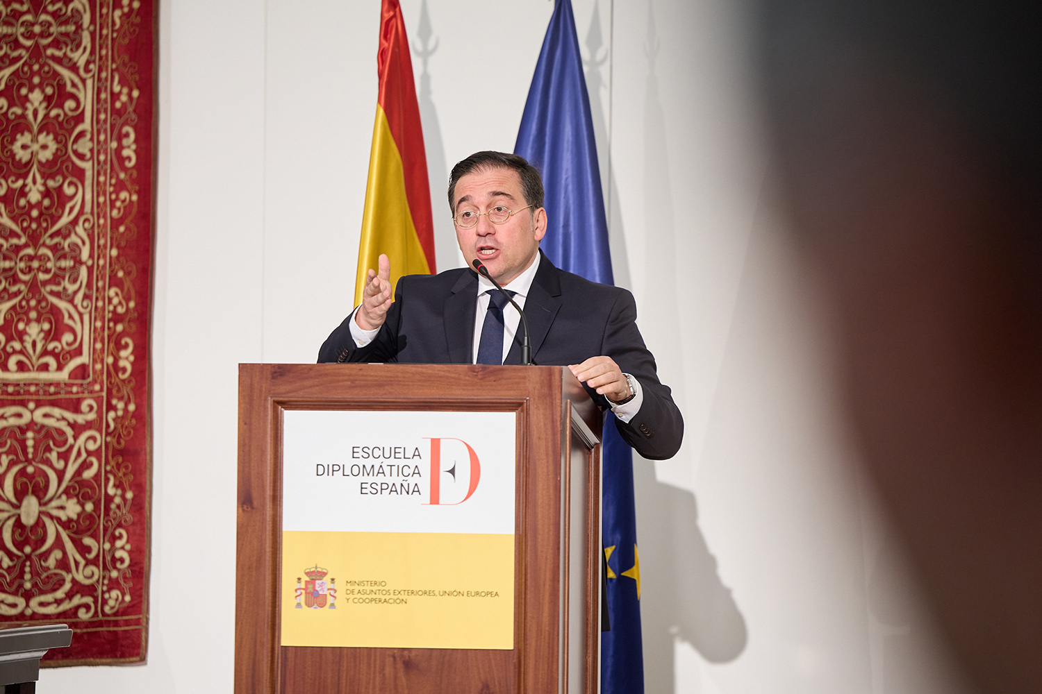 Por su parte, el ministro José Manuel Albares ha subrayado que, "por segundo año consecutivo, tenemos una promoción con más mujeres que hombres", y se ha comprometido a avanzar hacia la paridad, un objetivo que ha calificado de "legítimo". En su discurso, el jefe de la diplomacia española ha reivindicado el "prestigio de España" y el prestigio del cuerpo diplomático español, "que ha sabido ganarse el respeto y el aprecio internacional". A continuación, ha animado a los nuevos diplomáticos a promover y proyectar los valores de España en el mundo, así como su "riqueza cultural" y su "riqueza lingüística".