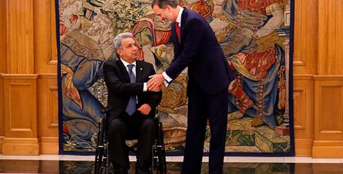 Posteriormente, el mandatario ecuatoriano se trasladó al Palacio de La Moncloa para reunirse con el presidente del Gobierno, Pedro Sánchez, en una entrevista seguida de un almuerzo de trabajo junto a varios miembros de sus respectivos gobiernos. En su encuentro, Lenín Moreno y Pedro Sánchez abordaron la situación regional y las relaciones bilaterales, comprometiéndose a seguir fortaleciéndolas en todos los ámbitos después de la firma de un convenio de cooperación policial cuyo objetivo es establecer los mecanismos y protocolos idóneos que faciliten el intercambio de información en materia de inteligencia policial, investigación y lucha contra la delincuencia organizada transnacional.