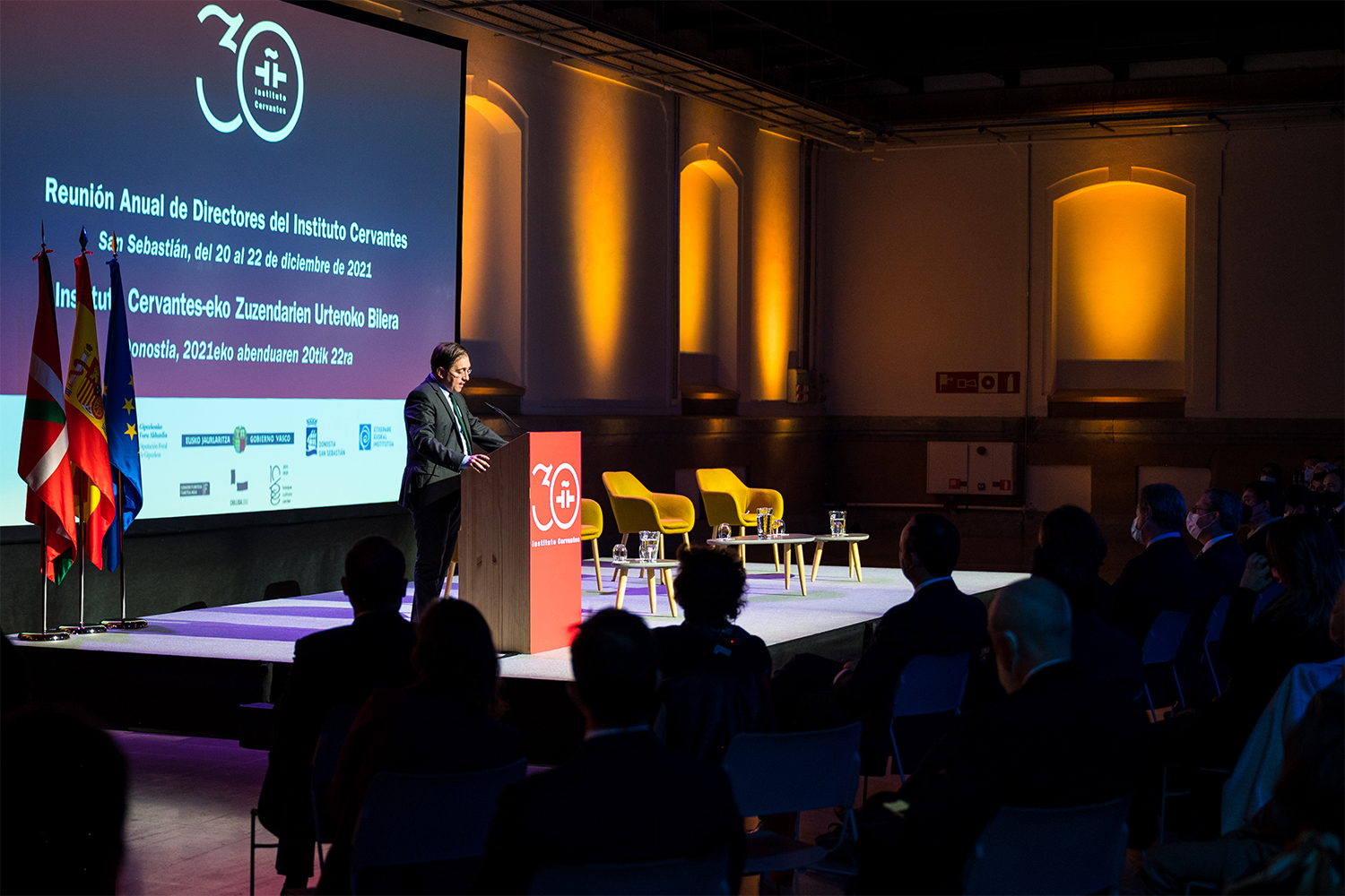 En la sesión de apertura, han intervenido el ministro José Manuel Albares, el director del Instituto Cervantes, Luis García Montero, y el consejero de Cultura y portavoz del gobierno vasco, Bingen Zupiria.
