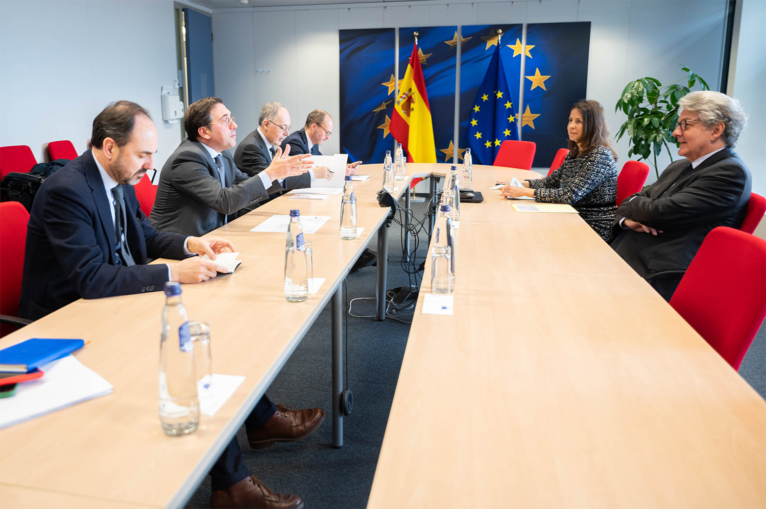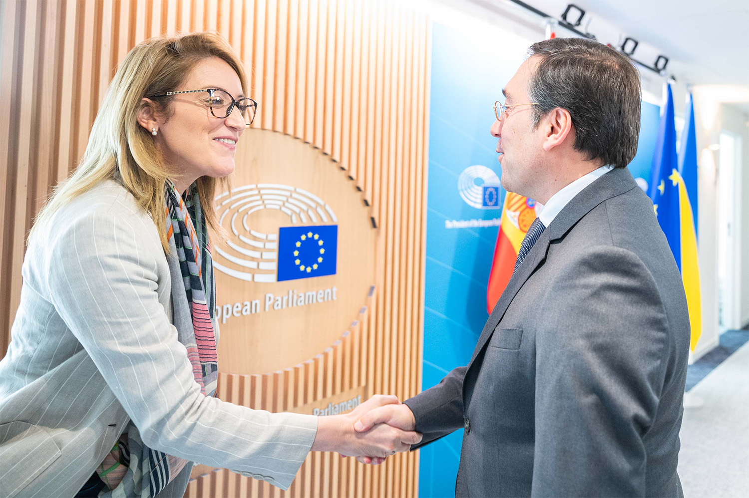 En Bruselas, el ministro de Asuntos Exteriores, Unión Europea y Cooperación se reunió con la presidenta del Parlamento Europeo, Roberta Metsola; con el vicepresidente de la Comisión encargado de Relaciones Interinstitucionales, Maros Sefcovic, y con el comisario de Mercado Interior y Servicios, Thierry Breton. El ministro Albares instó a la presidenta Metsola a “avanzar decididamente” en el uso del catalán, gallego y euskera en la Eurocámara tras la carta enviada por el Gobierno de España para trabajar en esa decisión. Por otra parte, en su reunión con el comisario Sefcovic, José Manuel Albares presentó la "propuesta global española" para el Peñón y la zona del Campo de Gibraltar y pidió acelerar las negociaciones con Reino Unido para cerrar el acuerdo que defina las relaciones de la Unión Europea con Gibraltar.