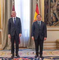 Visita del ministro de Asunto de Exteriores de Letonia April 26, 2022 José Manuel Albares recibe a su homólogo Edgars Rinkēvičs en el centenario de las relaciones diplomáticas entre Letonia y España.