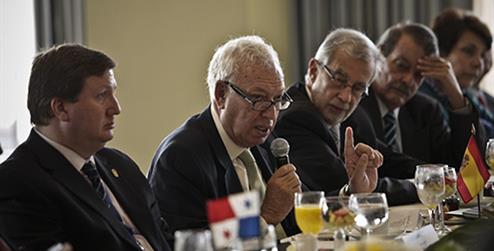 Por otra parte, José Manuel García-Margallo se reunió con sus colegas iberoamericanos para abordar, principalmente, la próxima Cumbre Iberoamericana, que se celebrará entre el 18 y el 19 de octubre en Panamá bajo el lema 'El papel político, económico, social y cultural de la Comunidad Iberoamericana en el nuevo contexto mundial'. Otro asunto tratado en la reunión fue el Acuerdo Marco de Colaboración para promover la conformación de un Centro Iberoamericano de Arbitraje, firmado en octubre de 2012 por 44 instituciones asentadas en los países de la región.