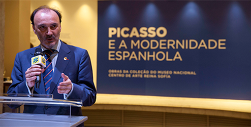 La exposición, que estará abierta hasta el 8 de junio en el centro Cultural Banco do Brasil, reúne obras de 37 artistas españoles, en su mayoría del pintor malagueño, e incluye bocetos de su "Guernica"; la muestra viajará posteriormente a Río de Janeiro. El secretario de Estado destacó el papel del Museo Reina Sofía de Madrid como galería iberoamericana que ahora presenta en Brasil otra fase artística de Picasso y todos los pintores de su generación.