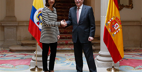 Alfonso Dastis ha reiterado a su homóloga colombiana el decidido apoyo y compromiso de España al postconflicto en Colombia, asegurando que la cooperación española seguirá centrándose en la consolidación de la paz. Al respecto, el ministro ha recordado que España co patrocinó sendas Resoluciones en el Consejo de Seguridad de las Naciones Unidas de apoyo a Colombia; que nuestro país participa con observadores sobre el terreno, y que España fue el primer Estado miembro de la Unión Europea en anunciar su contribución al Fondo Fiduciario de la UE para la aplicación del acuerdo de paz.