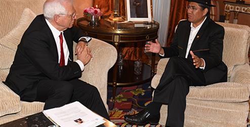 Por otra parte, Josep Borrell expresó el apoyo de España al propósito de Bolivia de obtener la exención de visados Schengen para sus nacionales y se interesó por las conversaciones de Bolivia con la Unión Europea sobre su eventual adhesión al Acuerdo Multipartes. En cuanto a la cooperación al desarrollo, en la que Bolivia es un socio prioritario para España, ambos ministros repasaron los primeros meses de implementación del Marco de Asociación País 2018-2021, firmado en agosto de 2018.