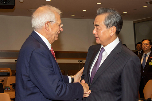 El ministro Borrell conversa con el canciller de China, Wang YI. FOTO EFE El ministro de Asuntos Exteriores, Unión Europea y Cooperación en funciones ha mantenido diversas reuniones bilaterales en los márgenes de la 74ª Asamblea General de las Naciones Unidas que se celebra en Nueva York. Josep Borrell se ha reunido, entre otros, con los cancilleres de Argentina, Chile, China y Marruecos.