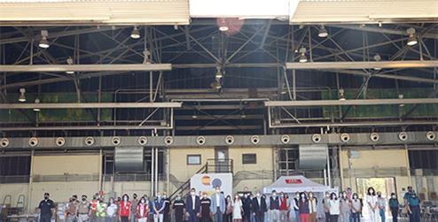 Concluida la visita al centro de recibimiento y acogida de la operación de repatriación desde Afganistán. Su Majestad el Rey se trasladó hacia el Área de Vida, donde pudo comprobar de primera mano el funcionamiento de su intendencia y logística y realizar una visita a las siguientes instalaciones: Comedor, Área de vivienda de tiendas-iglú instaladas y área de entrevistas, donde Su Majestad el Rey puso el punto y final a su visita con un encuentro con una familia afgana.