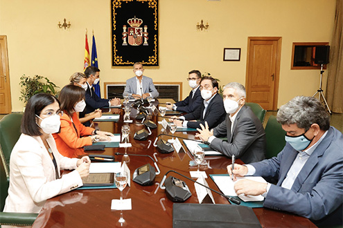 Junto a Sánchez, acuedieron a la base de Torrejón varios ministros como los de Asuntos Exteriores, Defensa e Interior, José Manuel Albares, Margarita Robles y Fernando Grande Marlaska, respectivamente, que junto al titular de Inclusión, José Luis Escrivá, han estado encargados del dispositivo que se cierra este viernes.