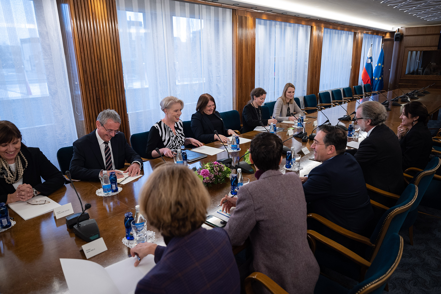 El ministro de Asuntos Exteriores, Unión Europea y Cooperación mantiene un encuentro con la Presidenta de la Asamblea Nacional, Urska Klakocar Zupancic.
