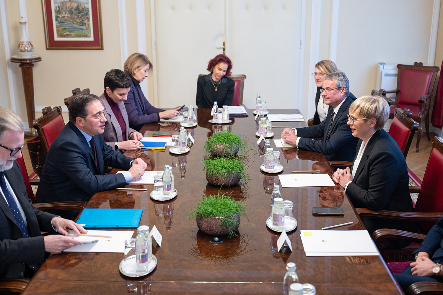 El jefe de la diplomacia española se reúne con la Presidenta de la República de Eslovenia, Nataša Pirc Musar.