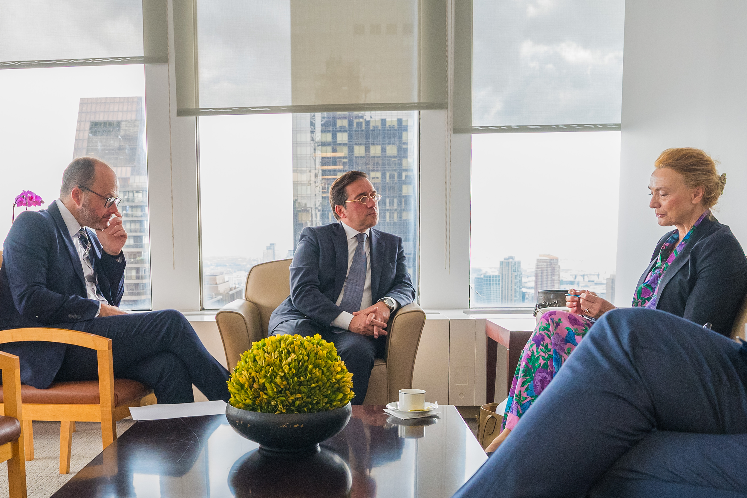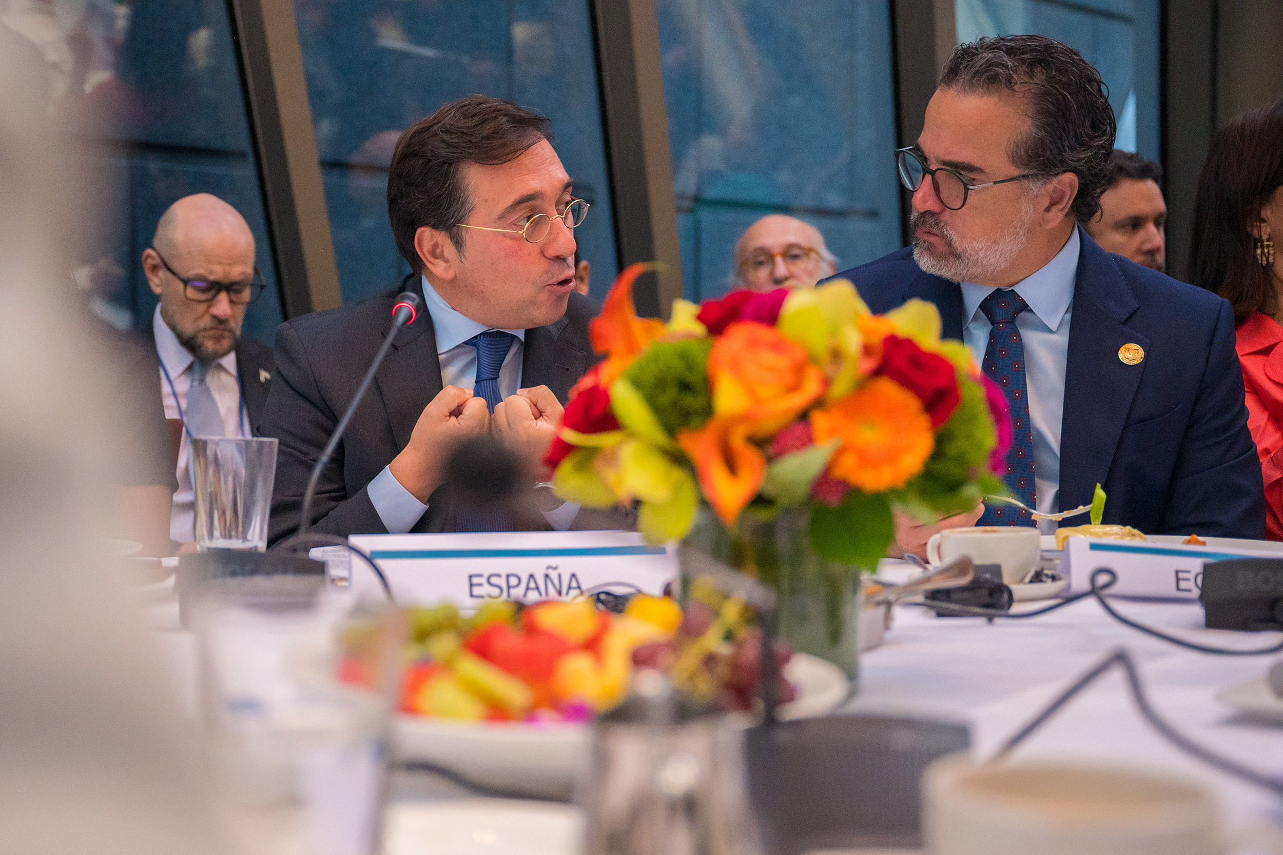 Durante su estancia en Nueva York, José Manuel Albares ha mantenido diversos encuentros bilaterales y ha participado en foros tradicionales de la Asamblea General. Entre ellos, la reunión ministerial de apoyo a la Corte Penal Internacional o el Foro Global contra el Terrorismo. Además, el jefe de la diplomacia española ha intervenido en el Foro Económico Global de la US-Spain Chamber of Commerce y se ha reunido con ‘think tanks’ y medios de comunicación. Con todos ellos, ha compartido los avances logrados por España en el ecuador de su semestre presidencial del Consejo de la Unión Europea.