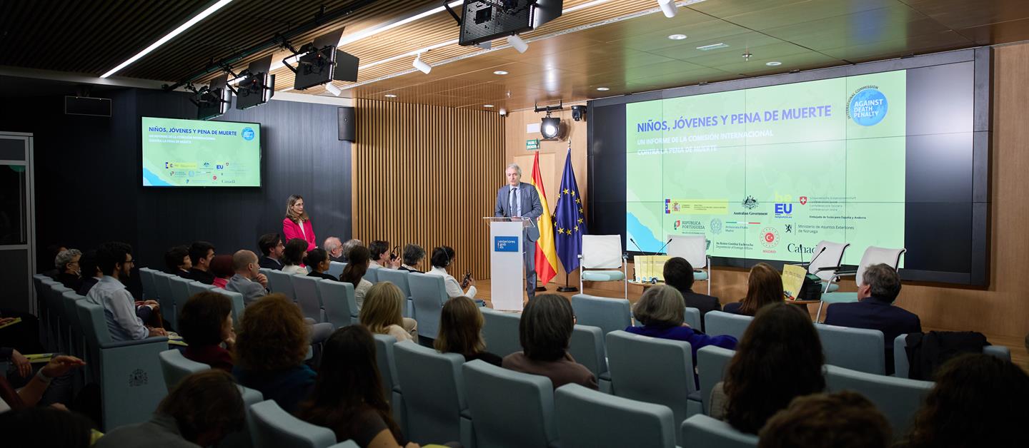 La Comisión Internacional contra la Pena de Muerte (CIPM) ha presentado hoy en el Ministerio de Asuntos Exteriores, Unión Europea y Cooperación, en su sede de Marqués de Salamanca, la versión en español del informe “Niños, jóvenes y pena de muerte”. El objetivo del informe y del evento, organizado con ocasión de la reunión anual de la Comisión, es poner los derechos de los niños y la abolición de la pena de muerte en el primer plano de la agenda internacional de derechos humanos.