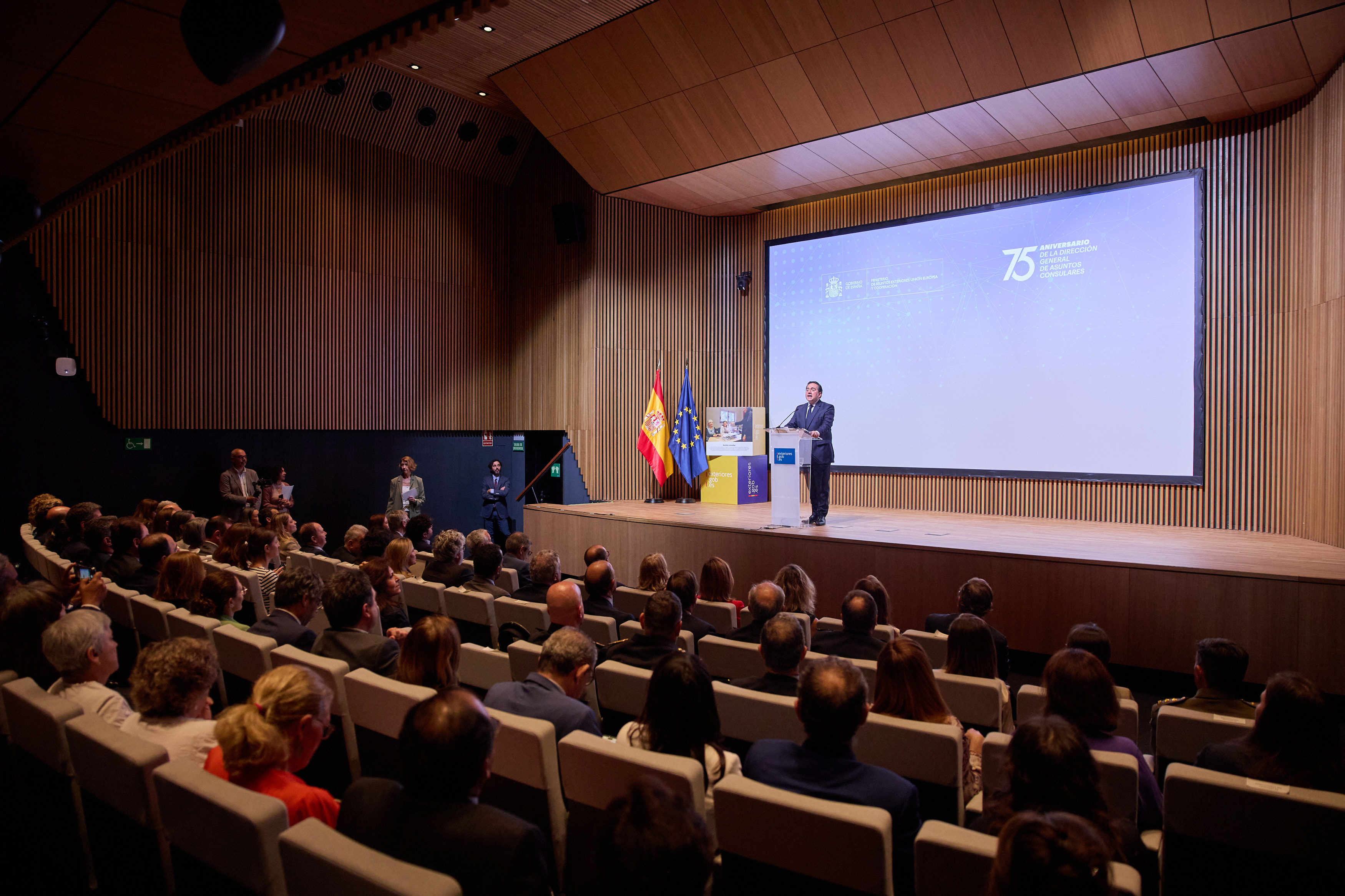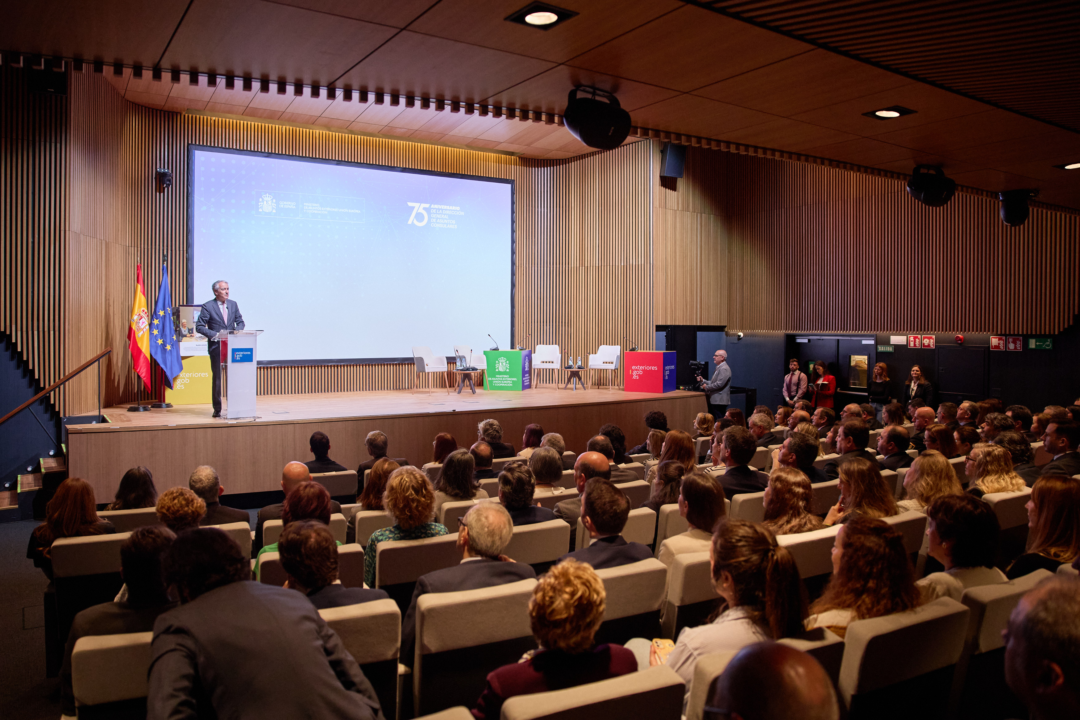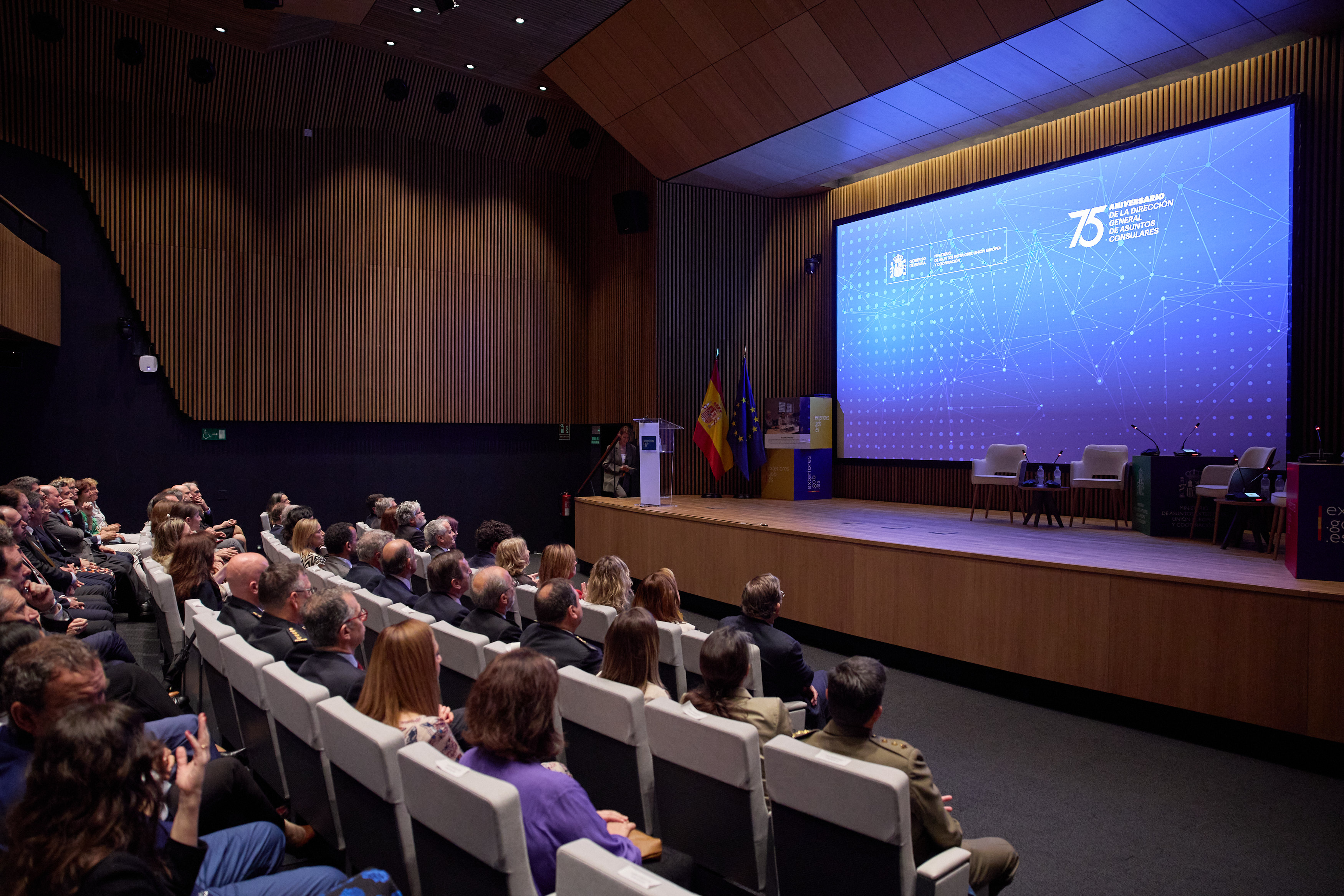 El Auditorio de la sede de Marqués de Salamanca ha reunido a invitados y participantes en una mesa redonda que ha abordado la historia de la Dirección General desde su creación en 1949. Tras la inauguración a cargo del subsecretario de Asuntos Exteriores, Luis Manuel Cuesta, y la proyección de un vídeo institucional, han intervenido Violeta Alonso, presidenta del Consejo General de la Ciudadanía Española en el Exterior (CGCEE), Rosario Bernal, cónsul general de España en Londres, y el embajador Santiago Cabanas, director general de Asuntos Consulares y Migratorios entre agosto de 2010 y julio de 2011.
