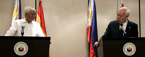 El ministro de Asuntos Exteriores y de Cooperación comparece ante los medios de comunicación junto a su homólogo filipino, Albert del Rosario. FOTO EFE.