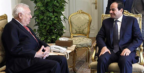 En El Cairo, José Manuel García-Margallo fue recibido por el presidente de la República de Egipto, Abdel Fattah Al Sisi, y se reunió con su homólogo, Sameh Shoukry. Con ambos, abordó las relaciones bilaterales, en particular, la solidaridad de España con Egipto en su lucha contra el terrorismo y el potencial de cooperación en los ambiciosos proyectos de infraestructuras que Egipto está desarrollando, en los que las empresas españolas pueden tener un importante papel.