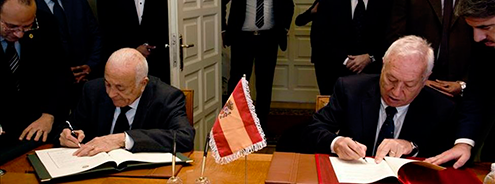 Durante su estancia en Egipto, el ministro García-Margallo se reunió con Nabil al Arabi, secretario general de la Liga Árabe con el que firmó un memorando de entendimiento. FOTO EFE