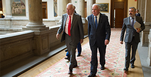 En su encuentro de trabajo, ambos ministros intercambiaron puntos de vista acerca del debate abierto del Consejo de Seguridad sobre el proceso de paz en Oriente Medio programado para el próximo 26 de enero y trataron las crisis regionales, con especial atención al conflicto sirio y a las expectativas del diálogo entre el régimen y la oposición con la mediación de las Naciones Unidas. Asimismo, José Manuel García-Margallo y Riad Malki hablaron de las relaciones bilaterales, deteniéndose particularmente en materias de cooperación y, en concreto, en el programa de becas y en los proyectos de fortalecimiento institucional.