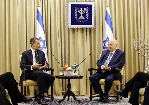Esta mañana, don Felipe se ha reunido con el presidente israelí, Reuvén Rivlin, con el que ha recordado la relevancia de Simón Peres "como uno de los constructores de la paz en Oriente Medio", poco antes de acudir juntos al funeral en Jerusalén. Ambos también trataron sobre relaciones bilaterales, los lazos históricos entre los dos países, que cumplen este año treinta años desde el establecimiento de relaciones, y analizaron la situación regional.