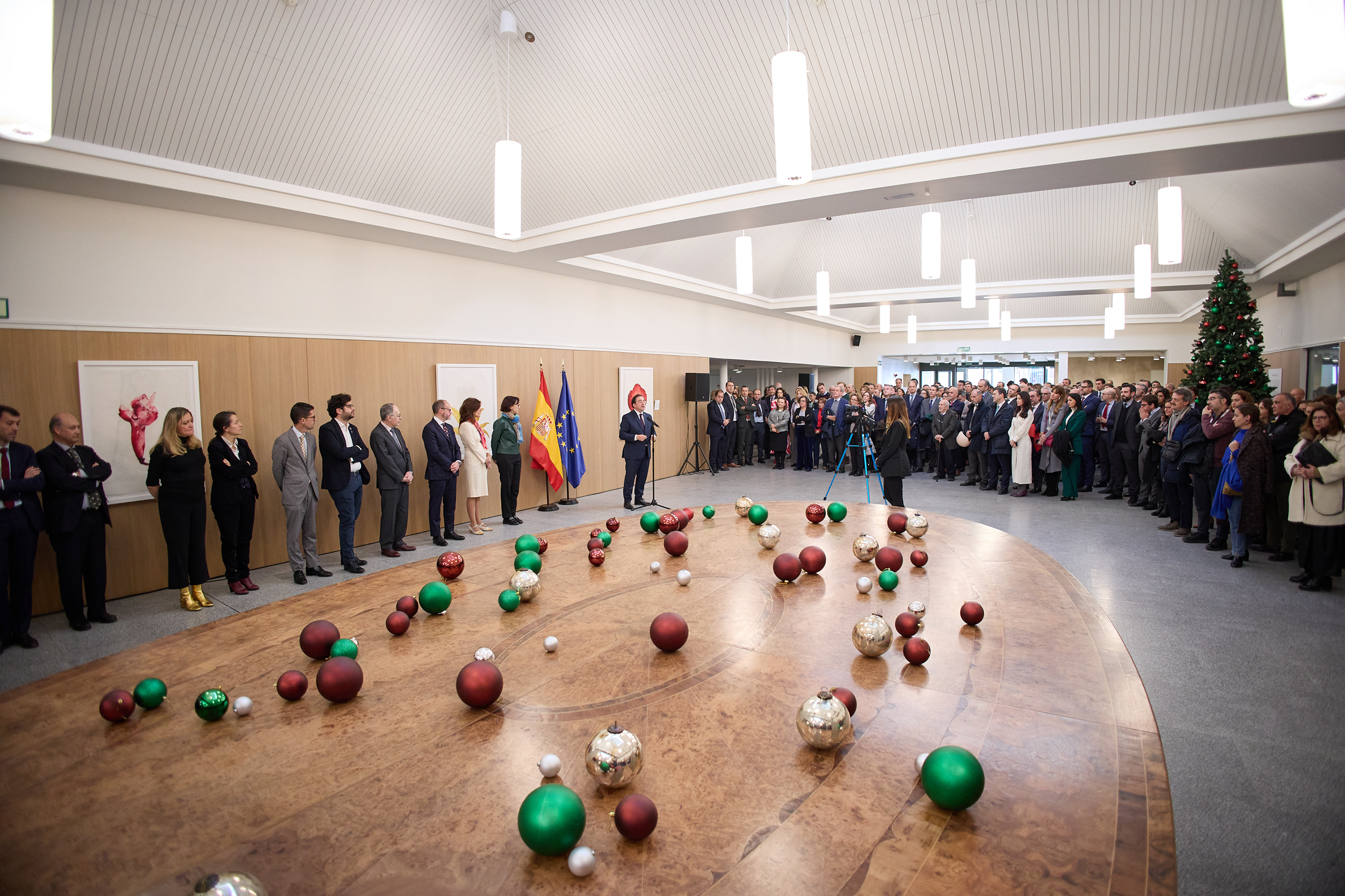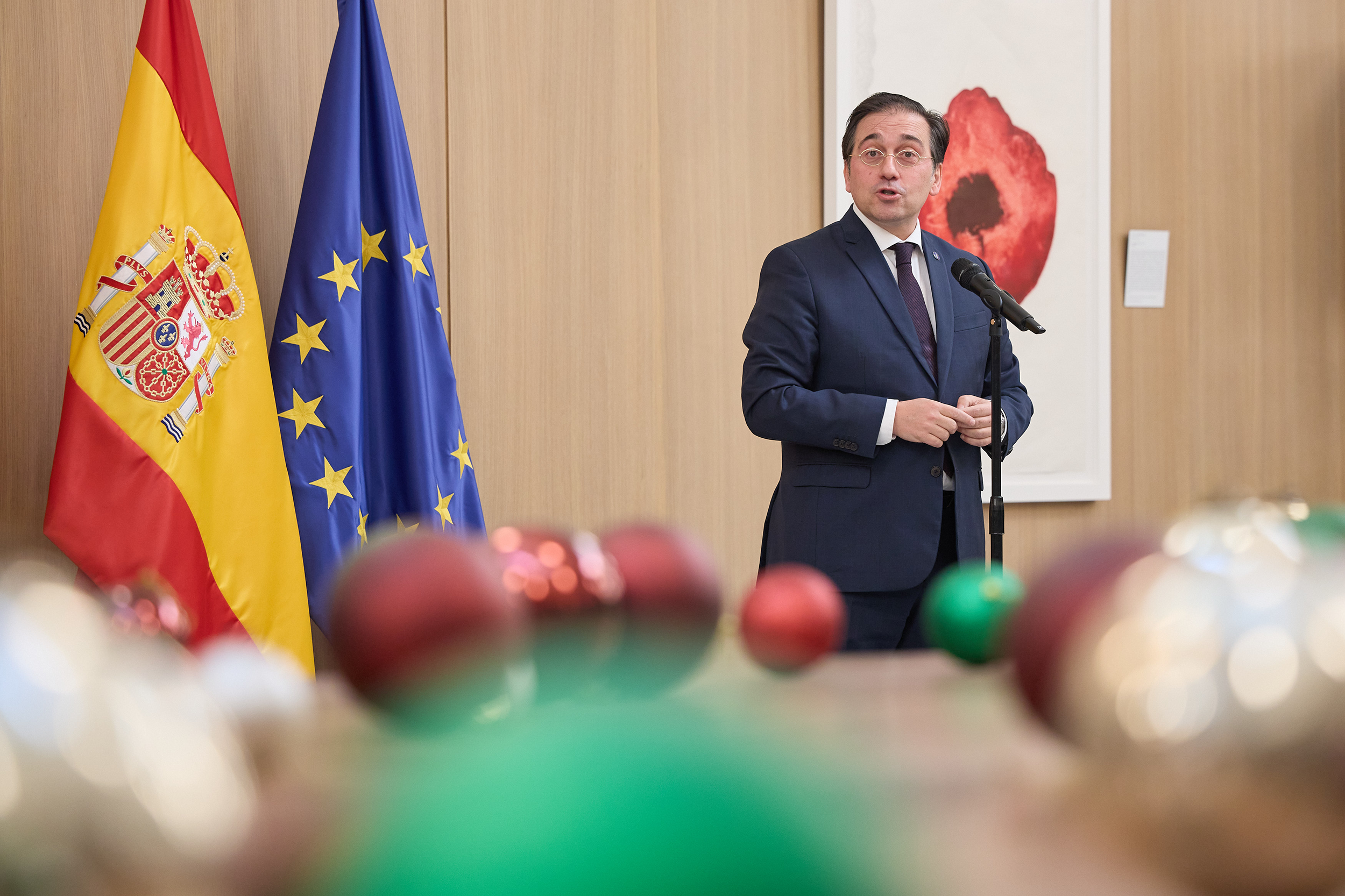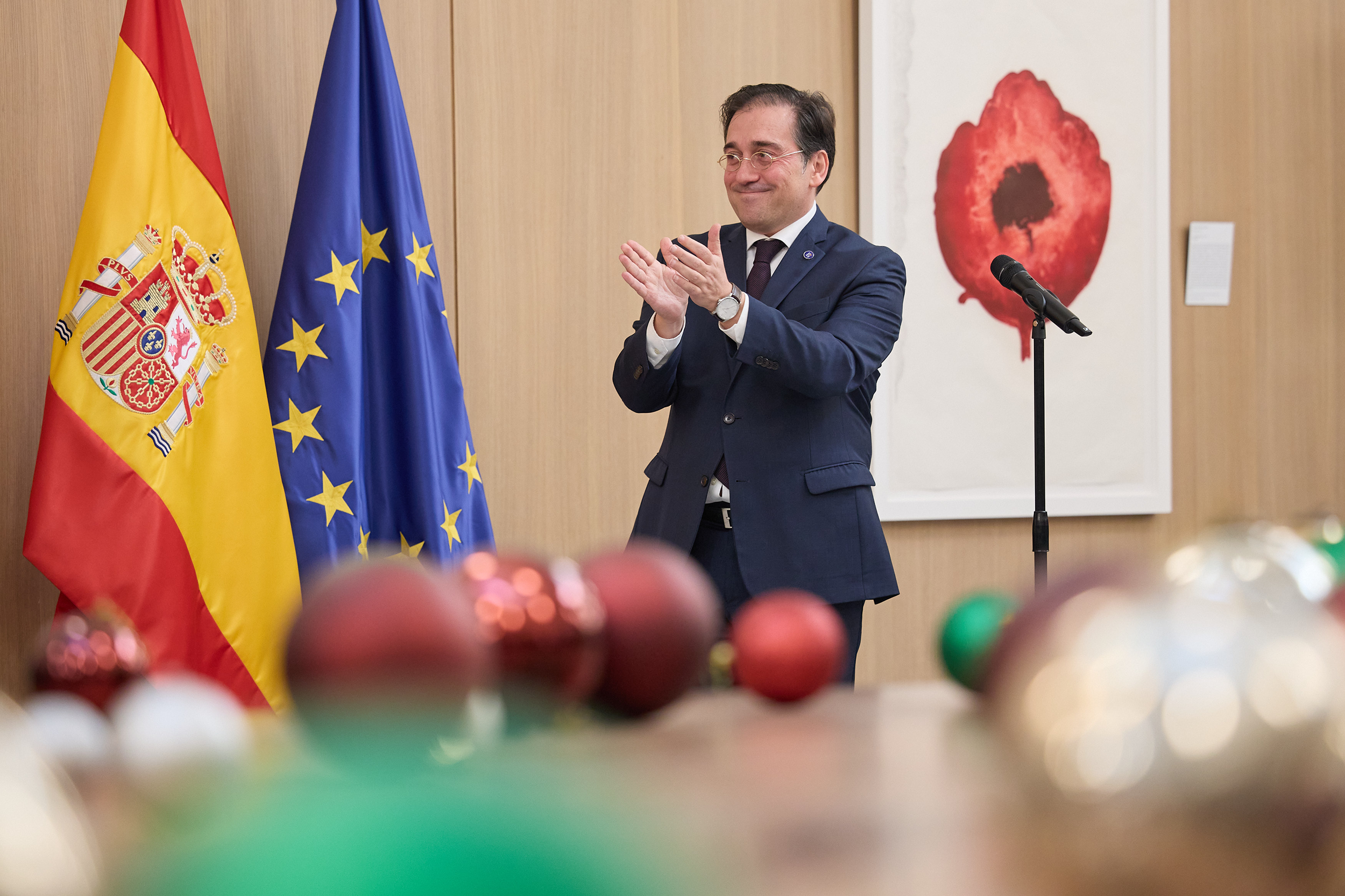 Durante la tradicional copa navideña, celebrada en la sede de Marqués de Salamanca, José Manuel Albares ha valorado el servicio público de un equipo “dinámico y plural”, del que ha destacado “la profesionalidad, el trabajo y el corazón”. Asimismo, el ministro Albares ha señalado que España “es un país democrático, plural y diverso, comprometido con los valores de Europa”.
