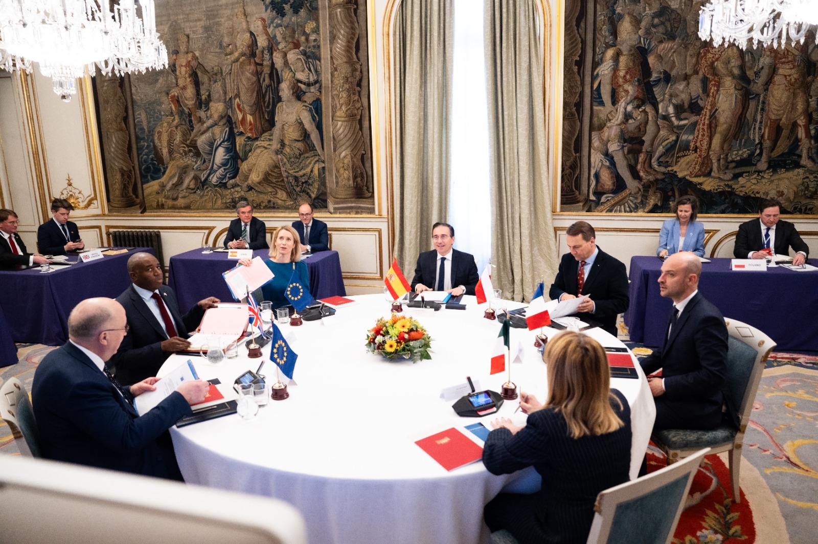 El formato “G5+” se ha consolidado como un espacio clave para la coordinación política y de seguridad en Europa. Lo componen los ministros de Asuntos Exteriores de España, Alemania, Francia, Italia, Polonia, además de Reino Unido y Ucrania, junto con la Alta Representante de la UE. Su principal objetivo es fortalecer la respuesta ante la agresión rusa en Ucrania y abordar cuestiones de seguridad europea.