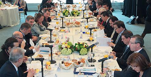 El ministro García-Margallo comentó que el espacio Iberoamericano se destaca hoy como un oasis de paz y estabilidad en el momento de convulsión que vive el mundo, por lo que propuso que las próximas Cumbres deberían abordar un diálogo político sobre problemas globales. A continuación, señaló la importancia de incorporar a las comunidades hispánicas de Estados Unidos, si no a los aspectos políticos de la Conferencia, sí a los culturales y empresariales. A este respecto, saludó la oferta de Puerto Rico de celebrar el Congreso de la Lengua.