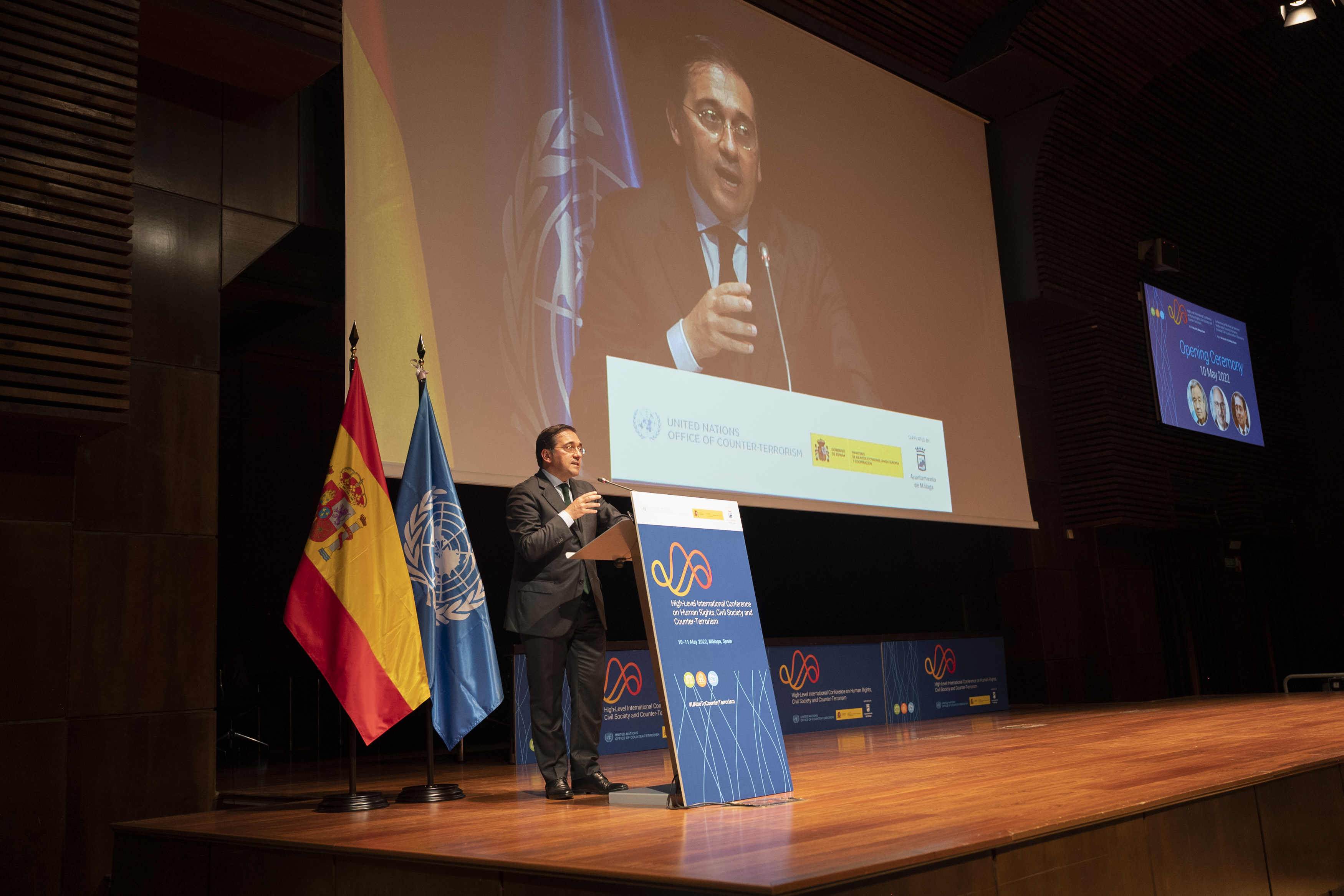 La sesión de apertura ha contado con una intervención telemática del Secretario General de Naciones Unidas, Antonio Guterres, y con un discurso presencial del ministro José Manuel Albares Bueno, quien ha recordado que España es uno de los estados miembro de la ONU con más reconocimiento en materia de lucha contra el terrorismo.