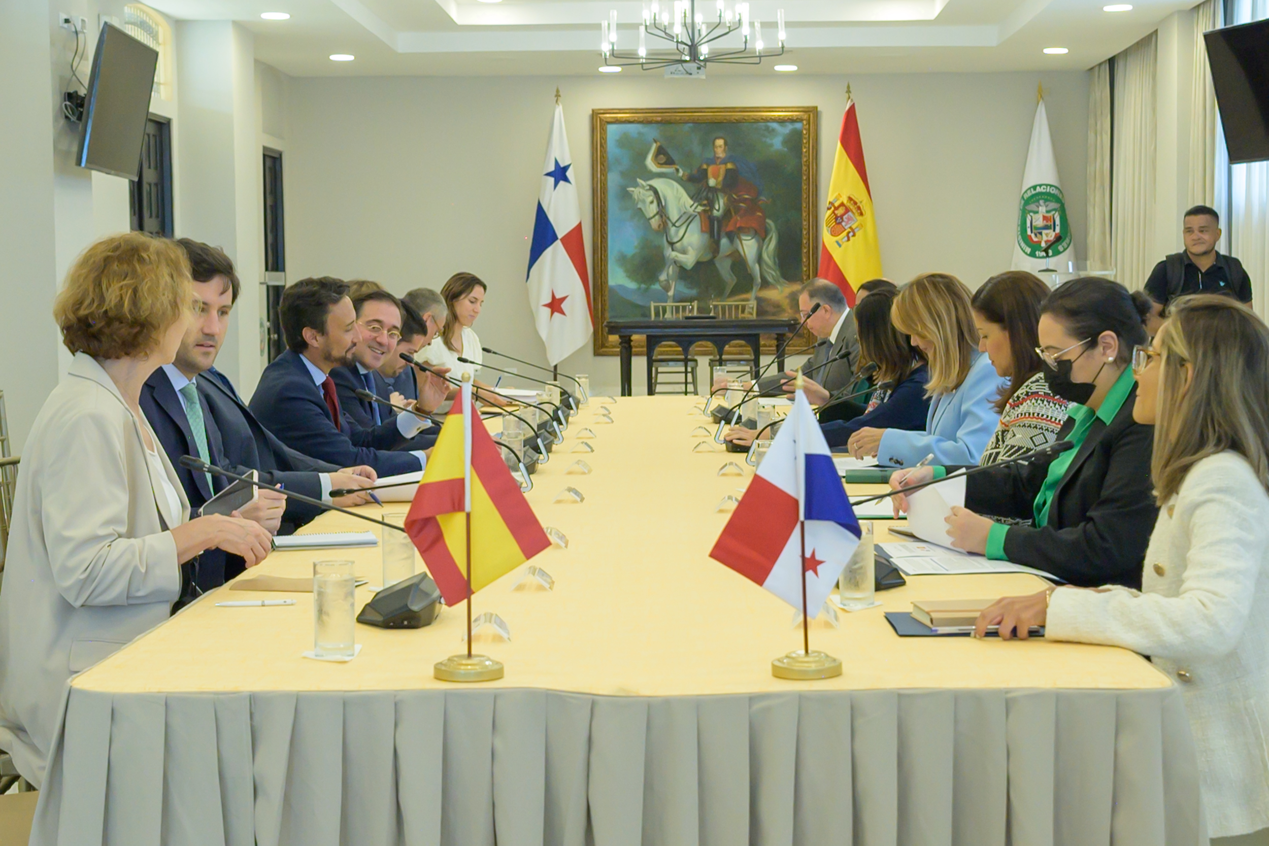 A continuación, José Manuel Albares mantuvo un encuentro de trabajo con su homóloga panameña, Janaina Tewaney, en el que repasaron, en palabras del ministro, “las excelentes relaciones políticas, de cooperación, económicas, regionales y latinoamericanas para encontrar cómo todavía hacerlas más estrechas". Durante la reunión, ambos ministros suscribieron un acuerdo para promover el uso de la lengua española en los organismos internacionales y los entes diplomáticos, con el fin de "reivindicar su carácter de idioma global".