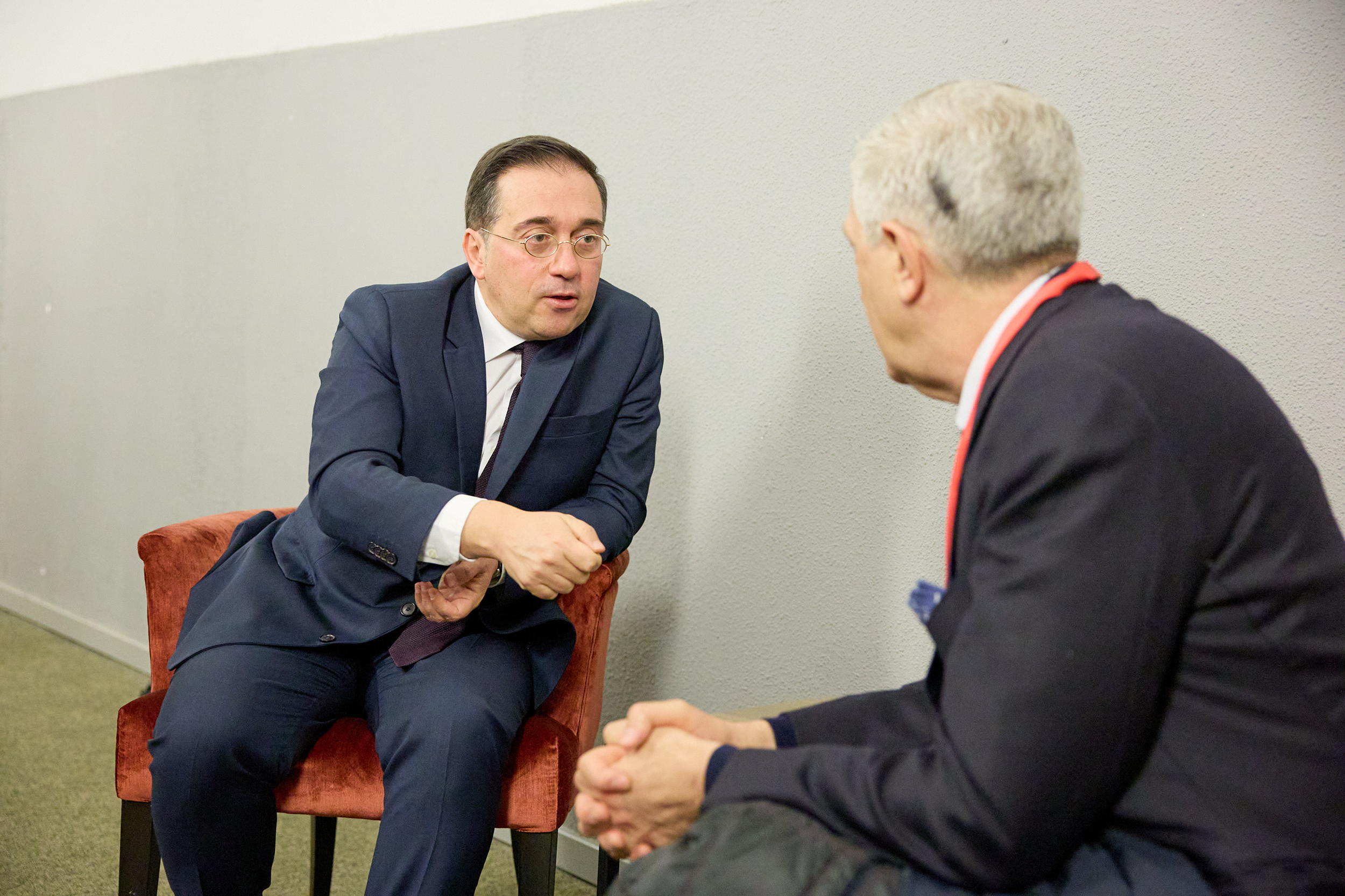 En la reunión, el ministro de Asuntos Exteriores, Unión Europea y Cooperación ha reiterado el llamamiento de España al alto el fuego inmediato en Gaza, el acceso sin obstáculos de la ayuda humanitaria y la liberación de rehenes.
